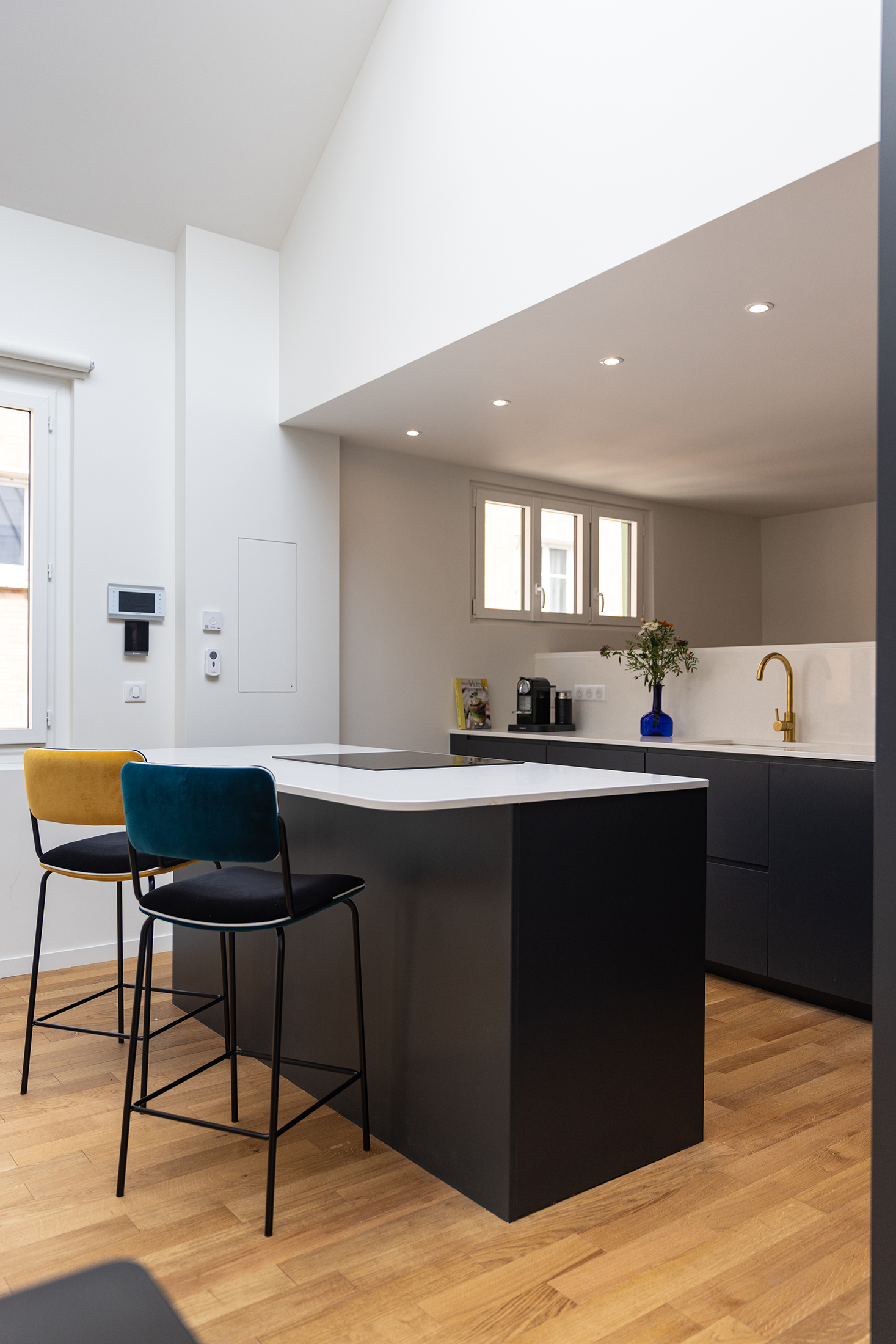 Situé au cœur du 18ème arrondissement de Paris, cet appartement de 110 m² à la géométrie atypique se déploie sur trois niveaux. Sa rénovation vise à répondre aux nouveaux besoins d’une famille, dont les enfants ont grandi, et à offrir à chacun plus de confort.