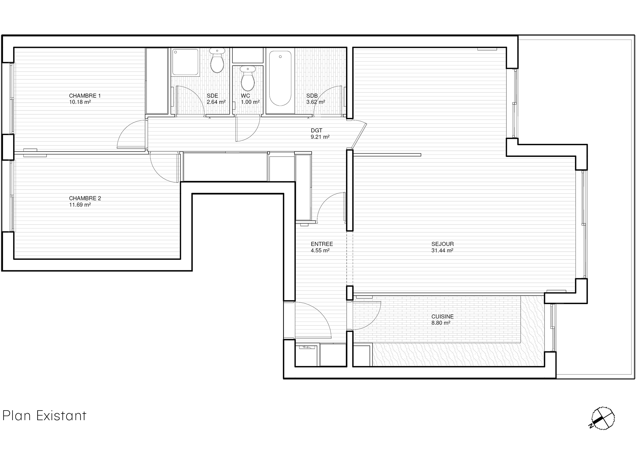 L’ouverture de la cuisine sur le séjour amplifie l’apport de lumière naturelle dans la pièce de vie. Alliant fonctionnalité et convivialité, la cuisine parée de façades en noyer devient la pièce maitresse de l’appartement. Une salle d’eau transformée en buanderie optimise l’aménagement tandis que les rangements rénovés sont complétés par des menuiseries sur mesure.