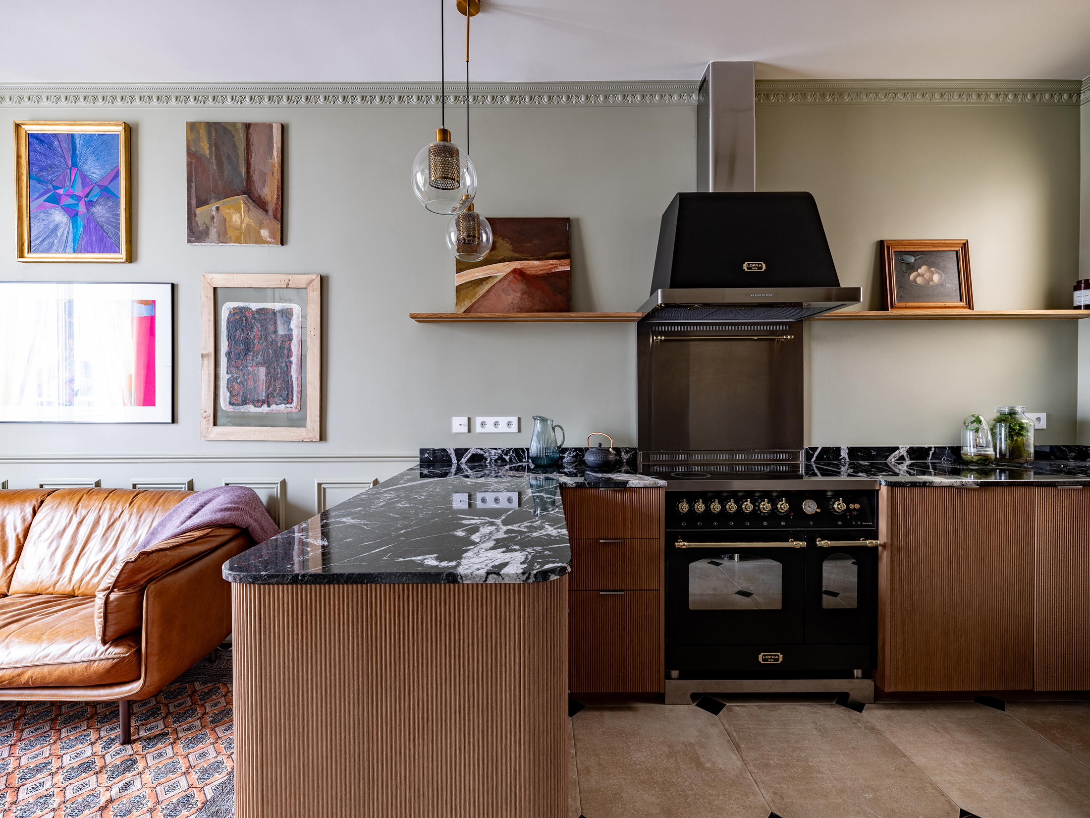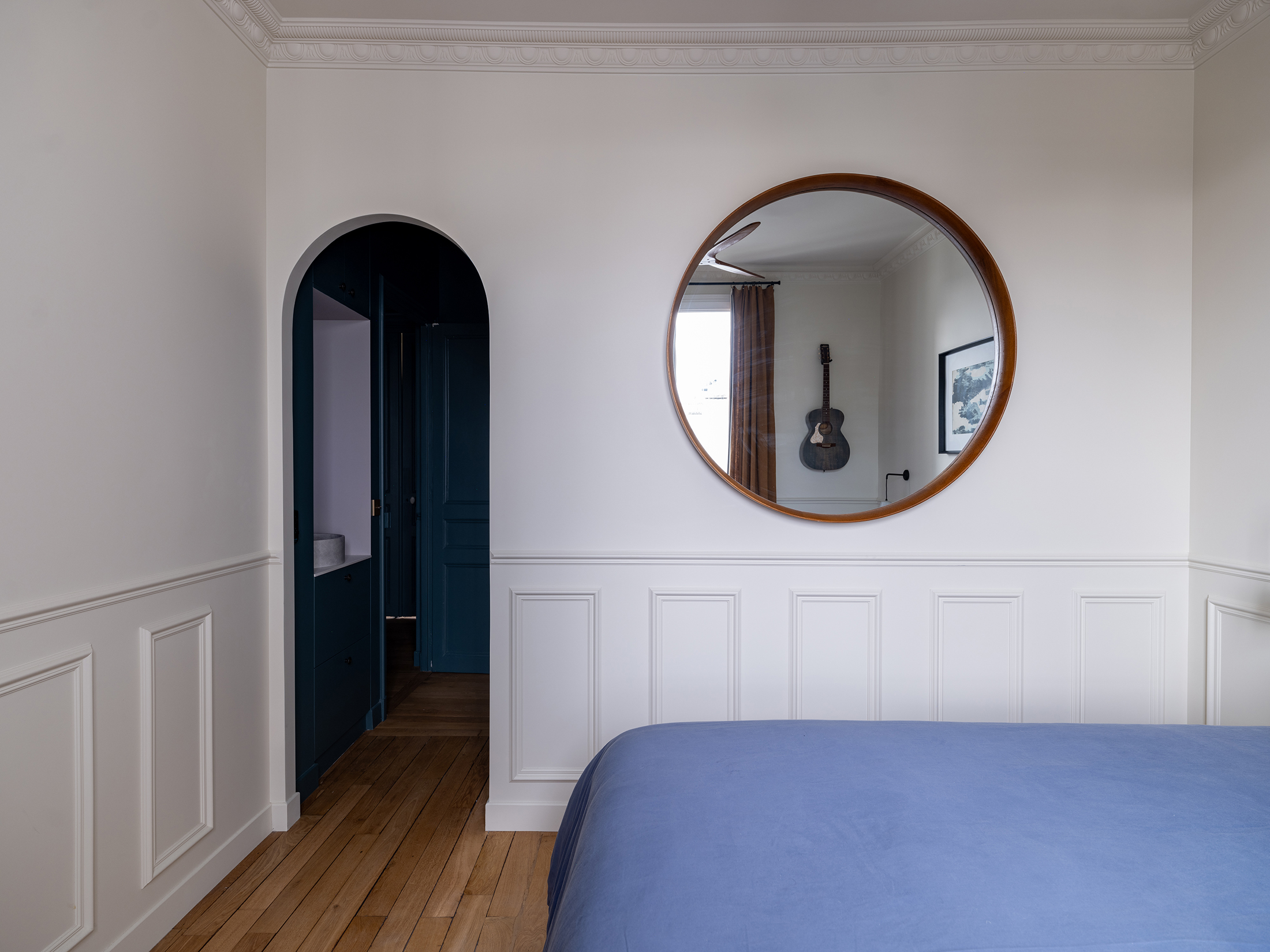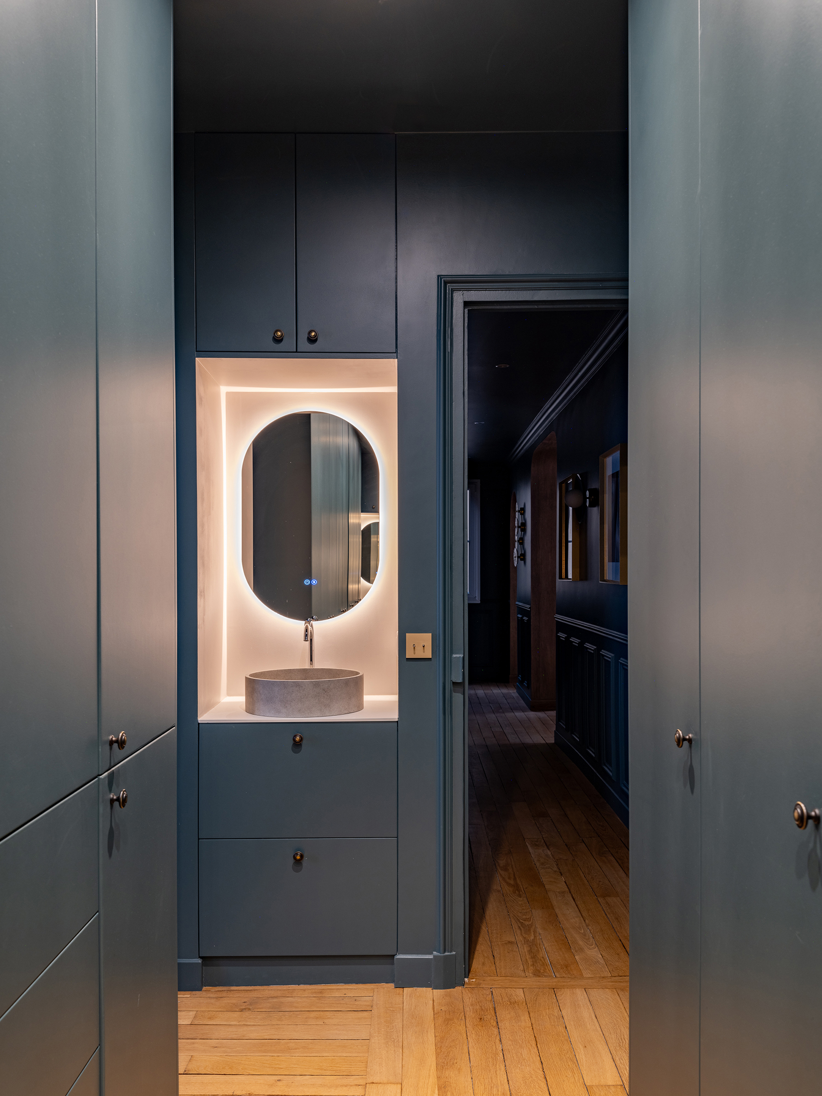 La circulation, parée d’une couleur feutrée, accueille une collection d’œuvres d’art. Elle n’est plus seulement un lieu de passage, elle devient un véritable lieu de vie et de contemplation.