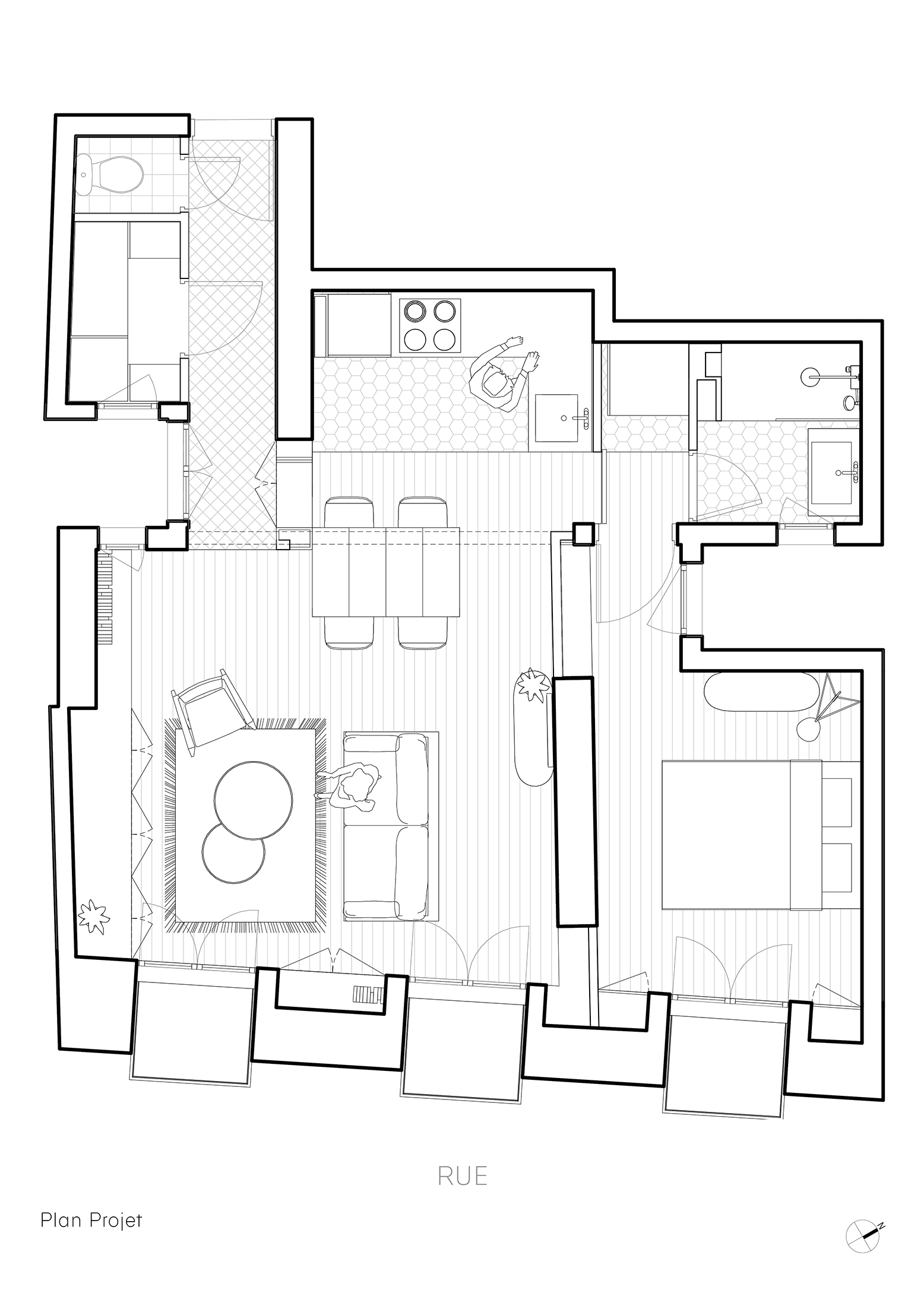 Au cœur du 9ème arrondissement de Paris, cet appartement de 41m² bénéficiant de trois charmants balcons nécessitait une rénovation complète afin d’offrir à ses propriétaires un espace de vie plus ouvert. L’intervention principale consistait à supprimer les portes et cloisons entre l’entrée, le séjour et la cuisine afin d’y faire pénétrer un maximum de lumière naturelle.