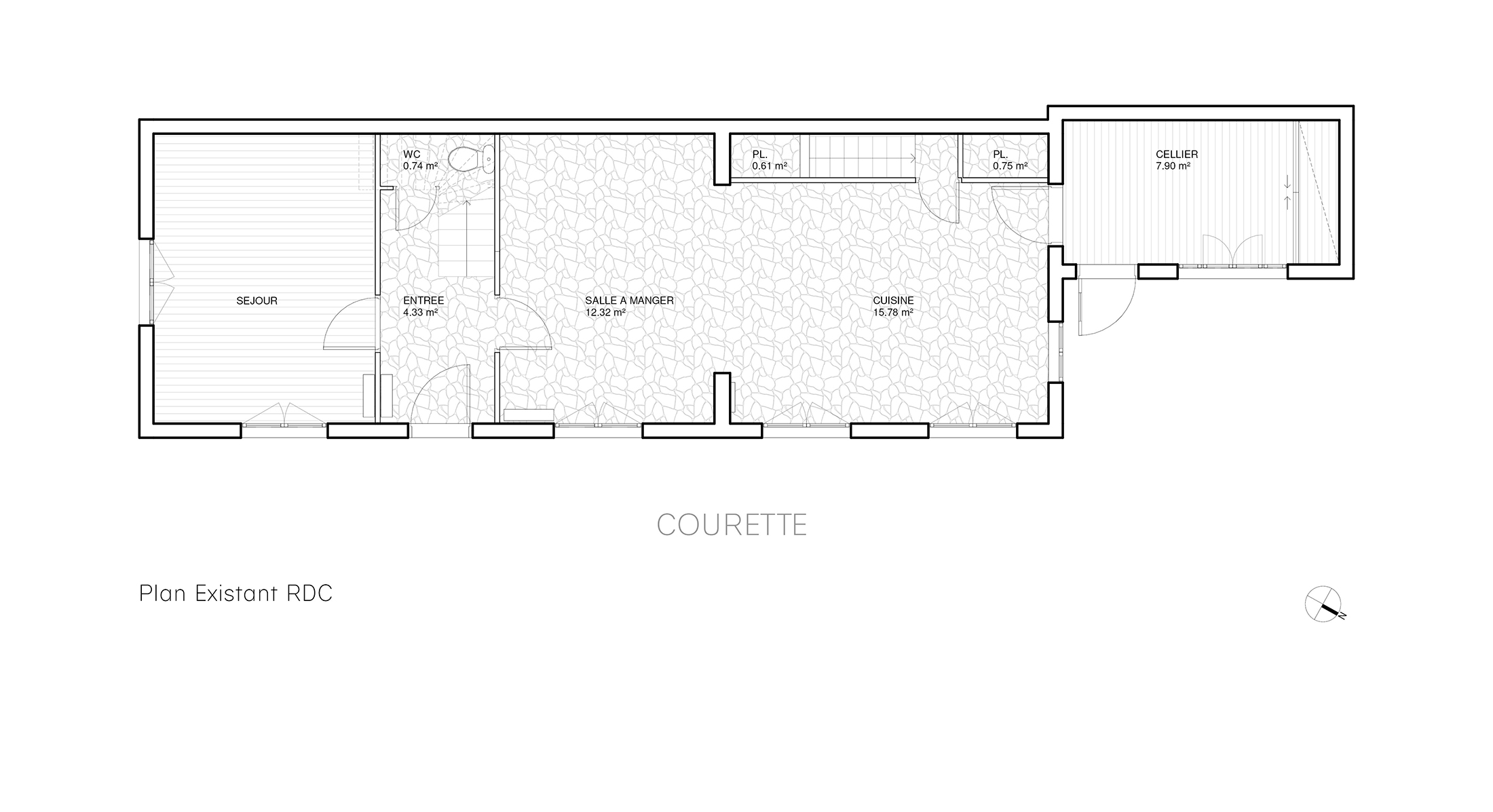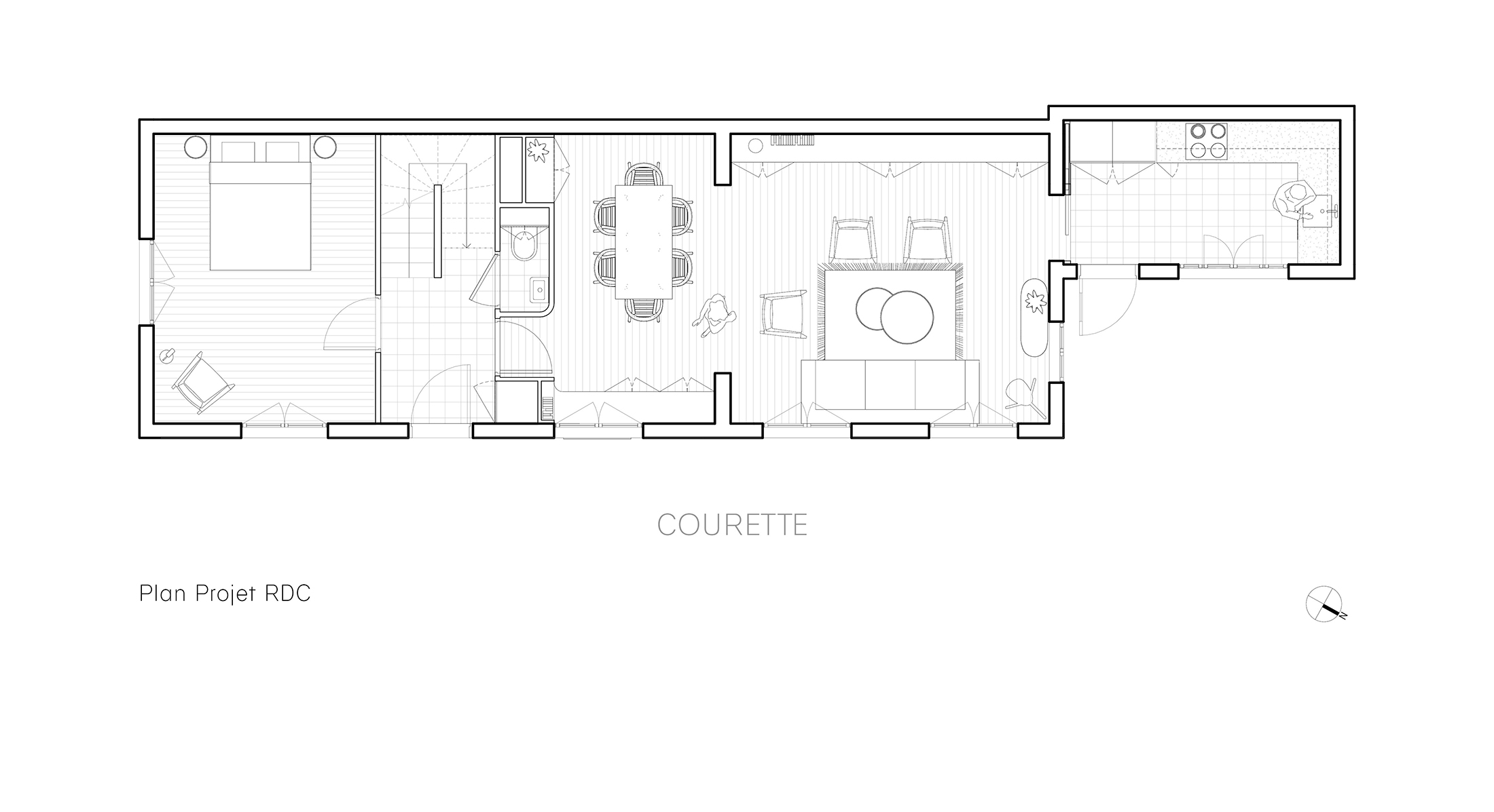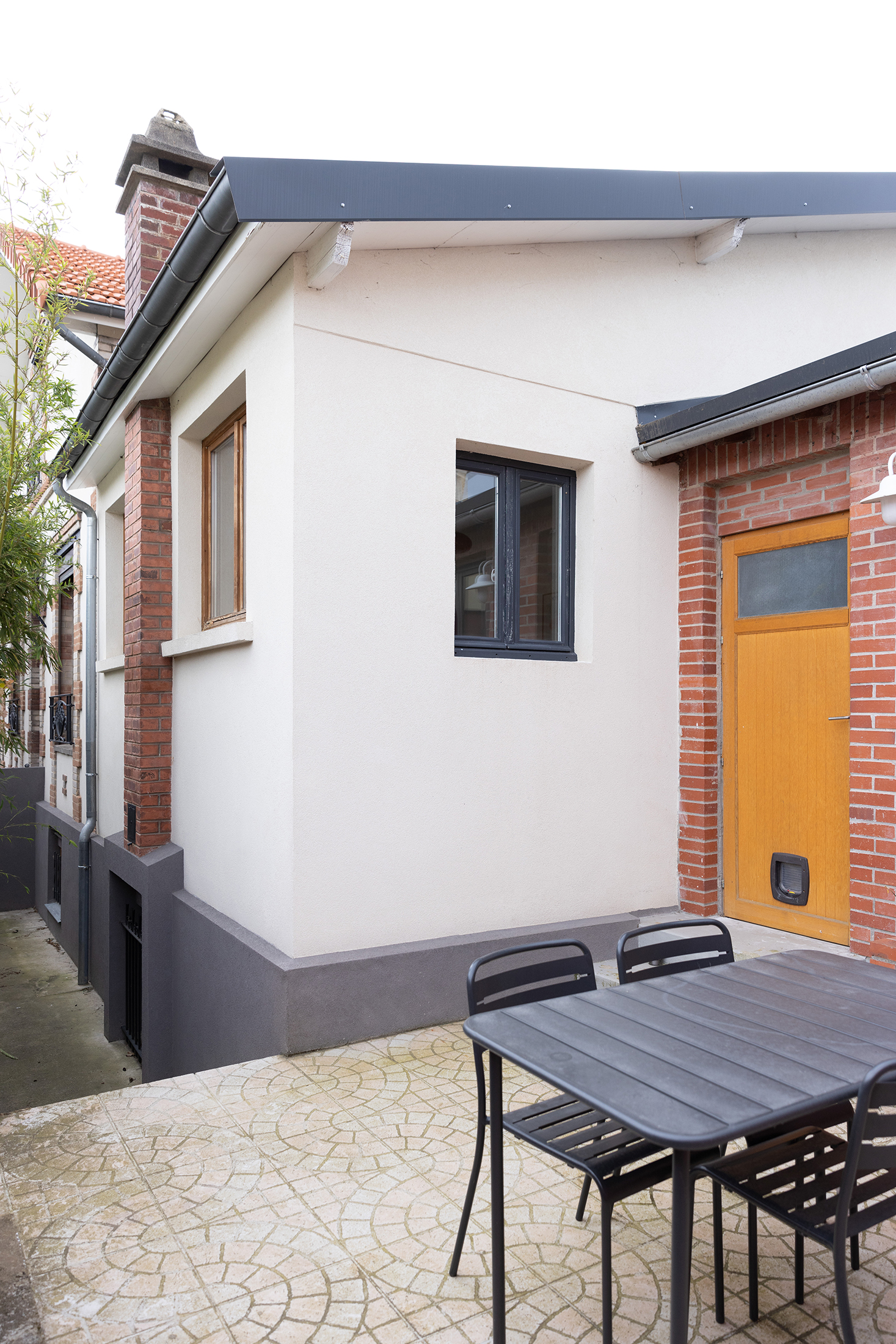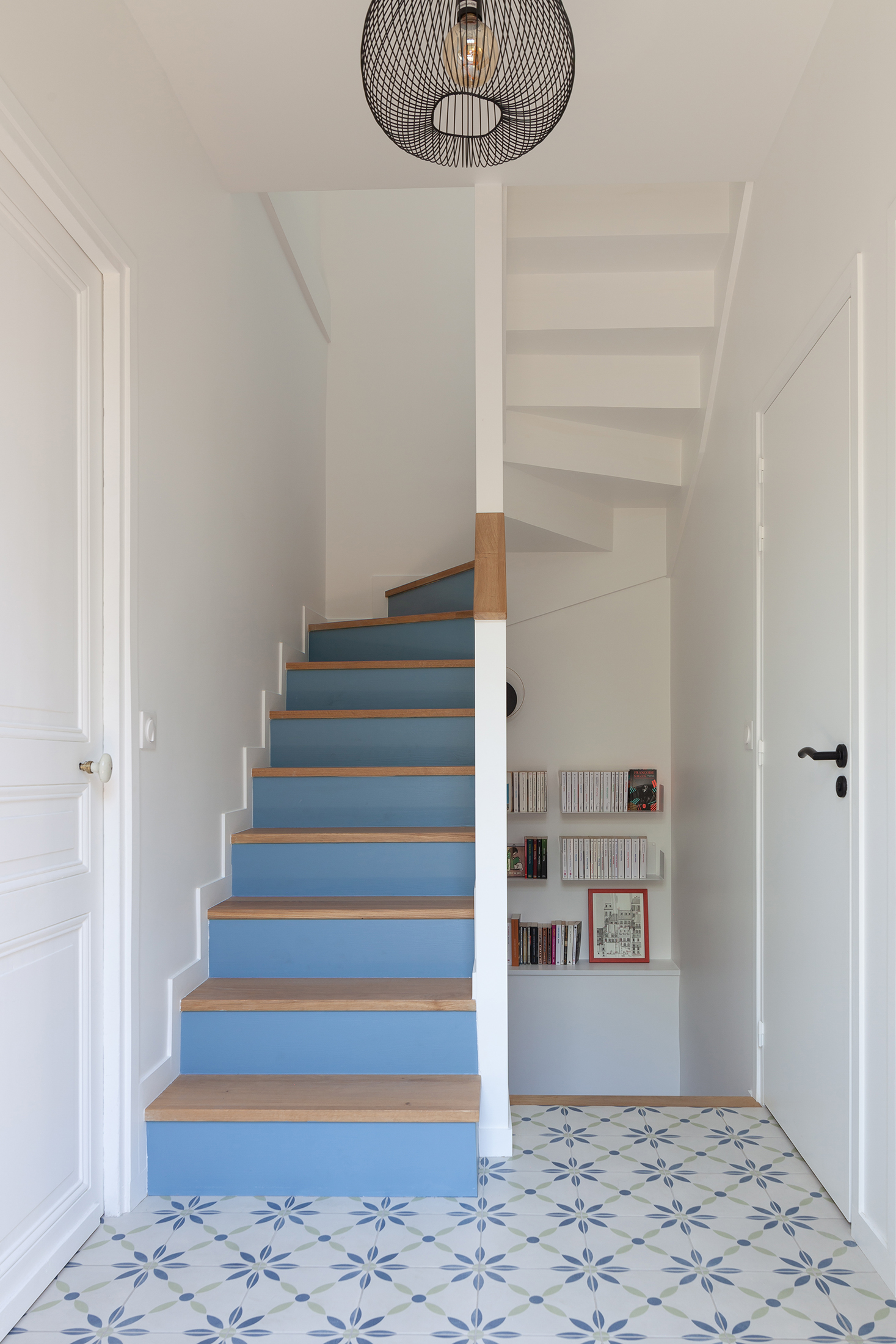 Située à Colombes, cette maison tout en longueur nécessitait une rénovation intégrale. Afin d’offrir plus de fluidité et de gagner en surface, un seul escalier central desservant les trois niveaux est créé. Ainsi le séjour est agrandi et la cuisine prend place dans l’ancien cellier en lien direct avec la terrasse.