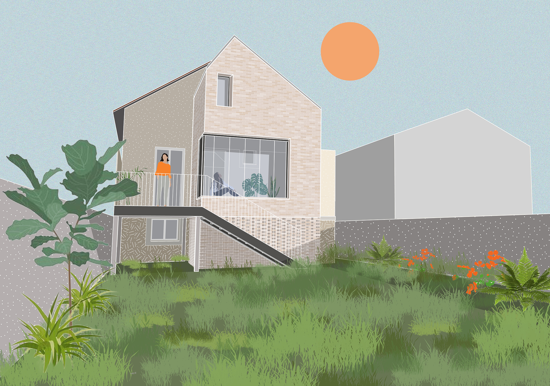 Le projet d’extension et de rénovation vise à agrandir l’espace de vie en créant un jardin d’hiver baigné de lumière et une terrasse surélevée en lien direct avec la cuisine et le jardin. Le rez-de-chaussée bénéficie ainsi d’une exposition traversante. L’étage est transformé afin d’offrir une chambre donnant sur le jardin et une salle de bain fonctionnelle et lumineuse.